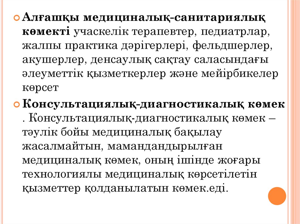 Медициналық көмектің негізгі түрлері:дәрігерге дейінгі