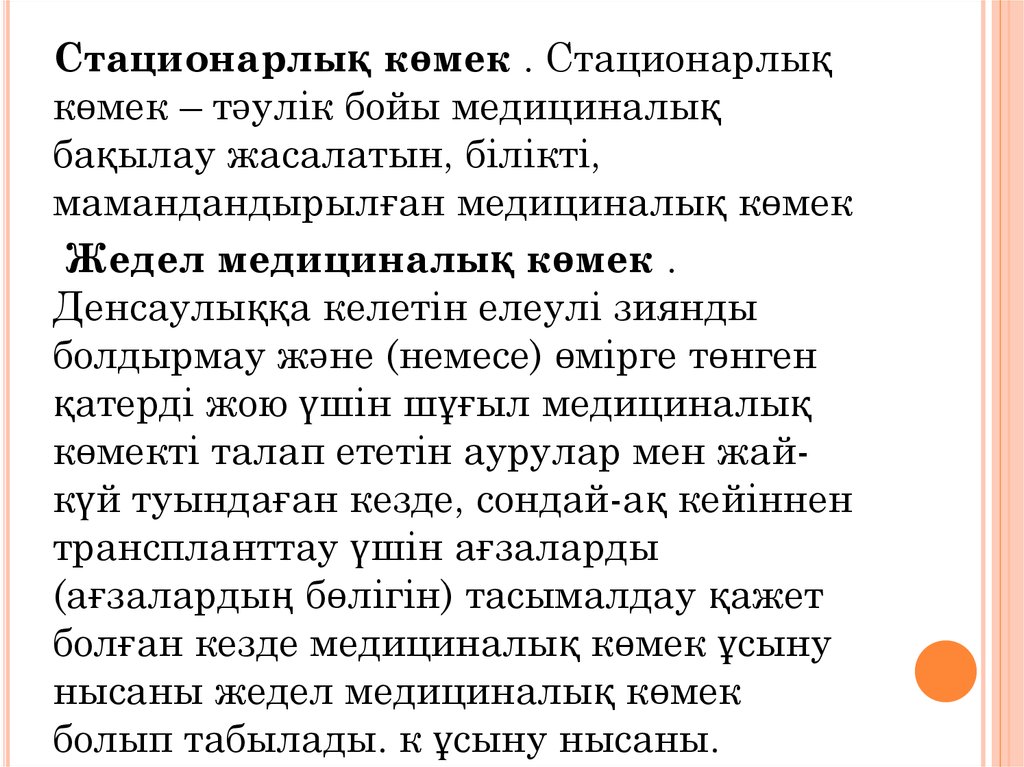 азаматтарға көрсетіледі.едициналық көмек