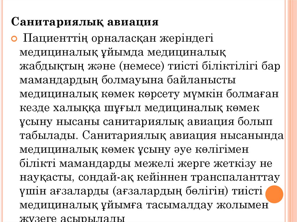 медициналық көмек ұсыну әуе көлігімен