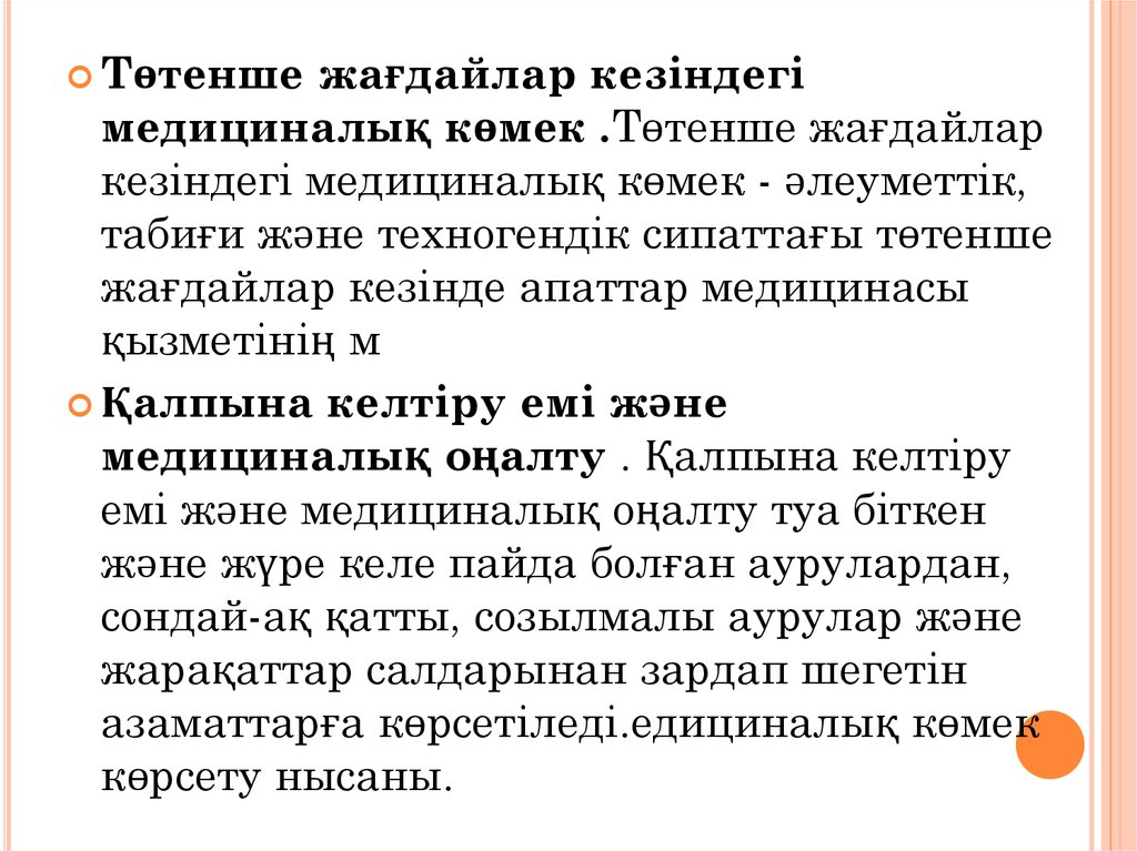 медициналық көмек .Төтенше жағдайлар