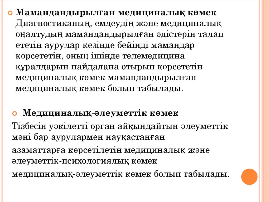 медициналық көмек мамандандырылған