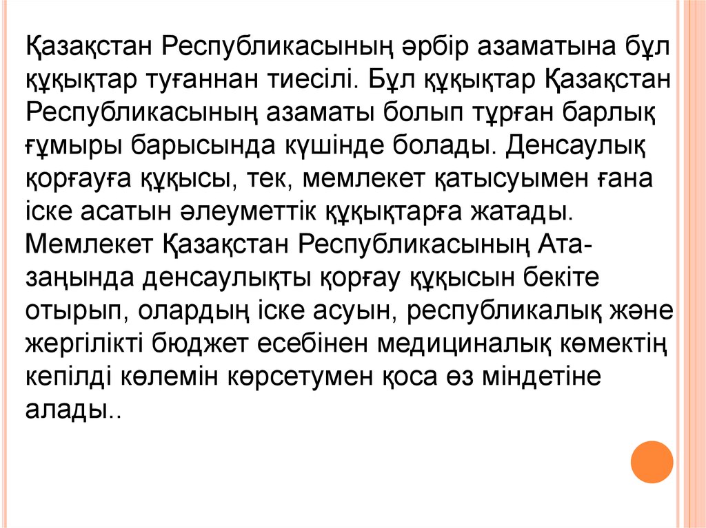 2.Азаматтардың денсаулығын қорғау құқығына