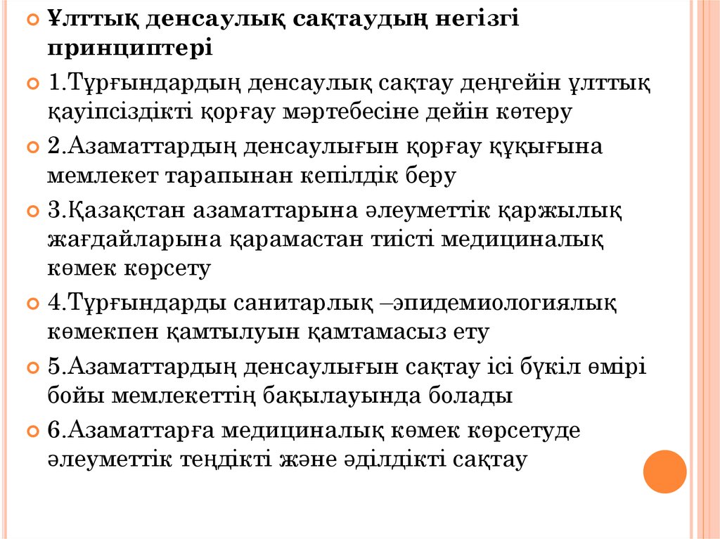 Ұлттық денсаулық сақтаудың негізгіпринциптері