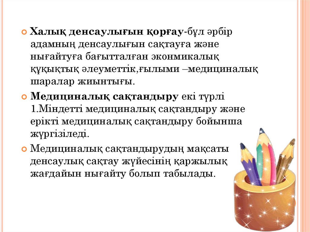 Халық денсаулығын қорғау-бұл әрбірадамның денсаулығын сақтауға және