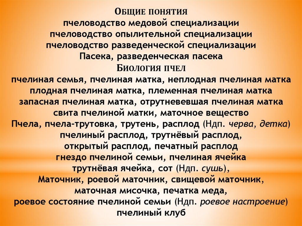 ОБЩИЕ ПОНЯТИЯпчеловодство медовой специализации