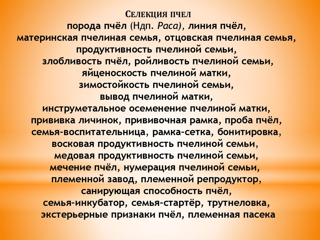 СЕЛЕКЦИЯ ПЧЕЛпорода пчёл (Ндп. Раса), линия пчёл,
