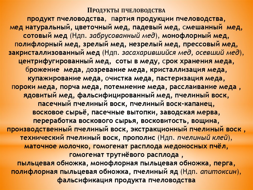 ПРОДУКТЫ ПЧЕЛОВОДСТВАпродукт пчеловодства, партия продукции пчеловодства,