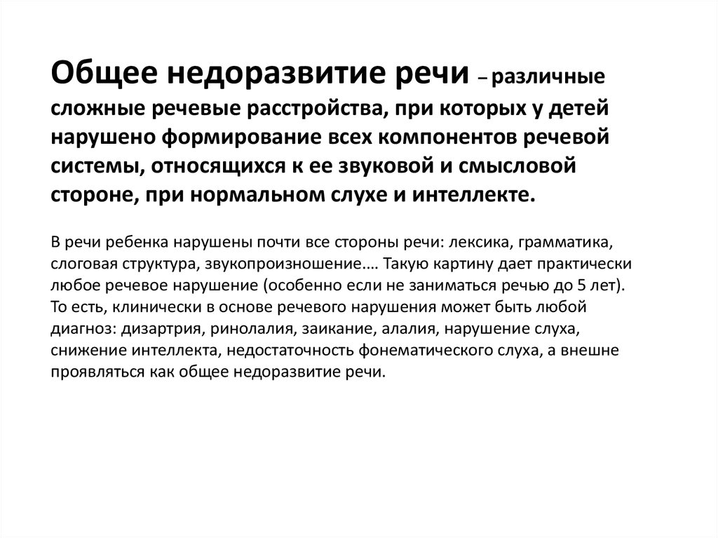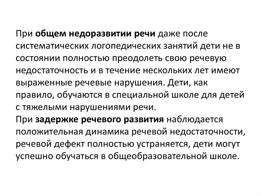 При общем недоразвитии речи даже послесистематических логопедических занятий дети не в