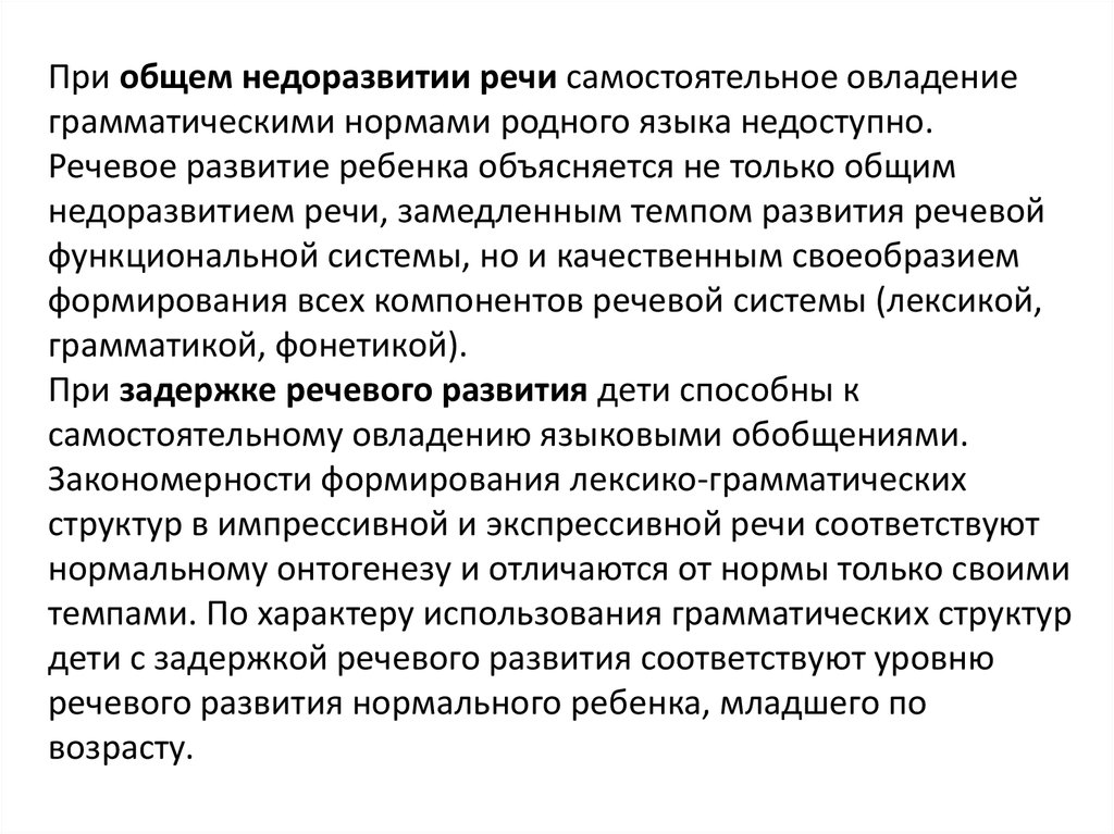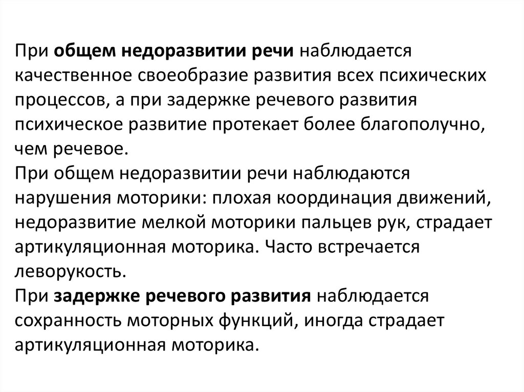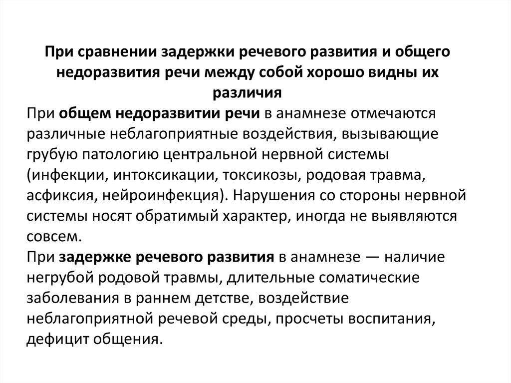При сравнении задержки речевого развития и общегонедоразвития речи между собой хорошо видны их