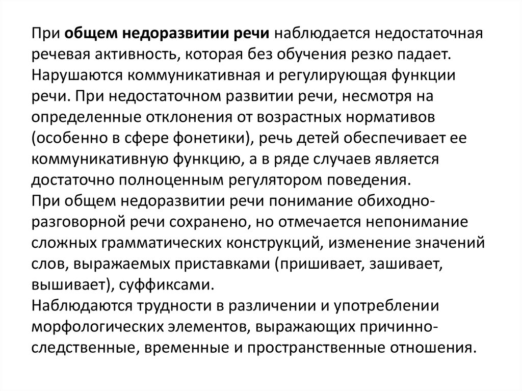 При общем недоразвитии речи наблюдается недостаточнаяречевая активность, которая без обучения резко падает.