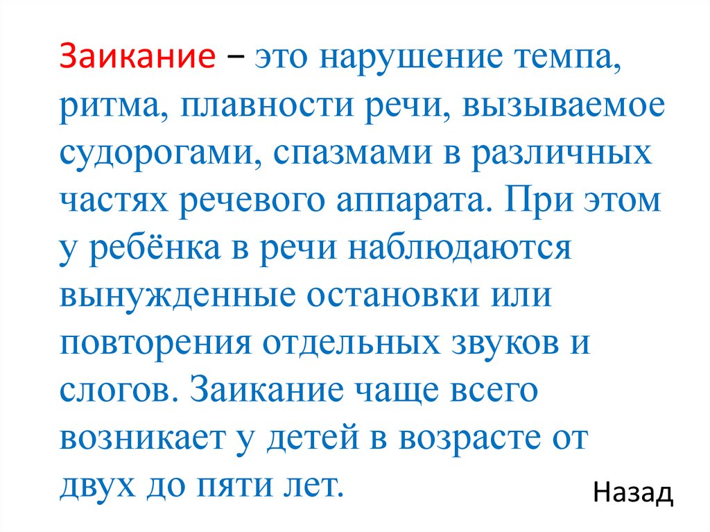 Заикание − это нарушение темпа,ритма, плавности речи, вызываемое