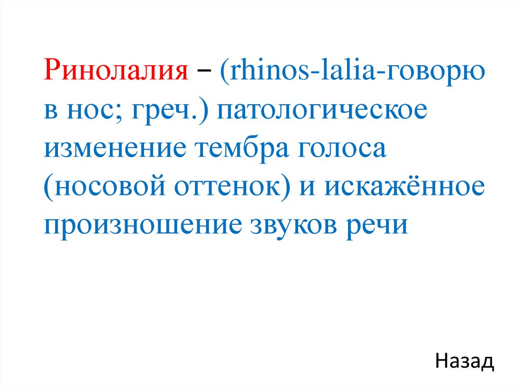 Ринолалия − (rhinos-lalia-говорюв нос; греч.) патологическое