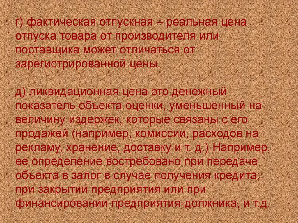 г) фактическая отпускная – реальная ценаотпуска товара от производителя или