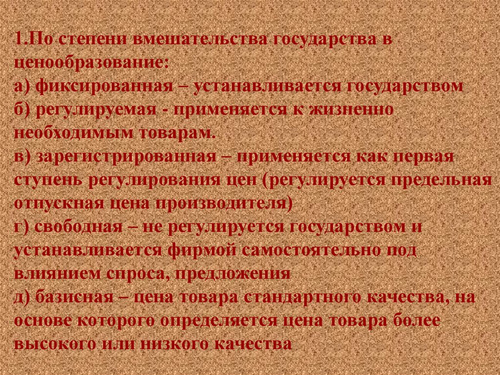 1.По степени вмешательства государства вценообразование: