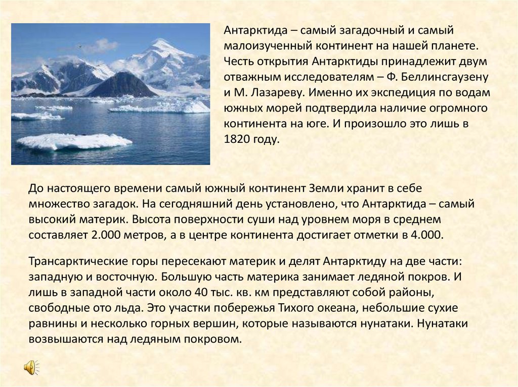 Антарктида – самый загадочный и самыймалоизученный континент на нашей планете.