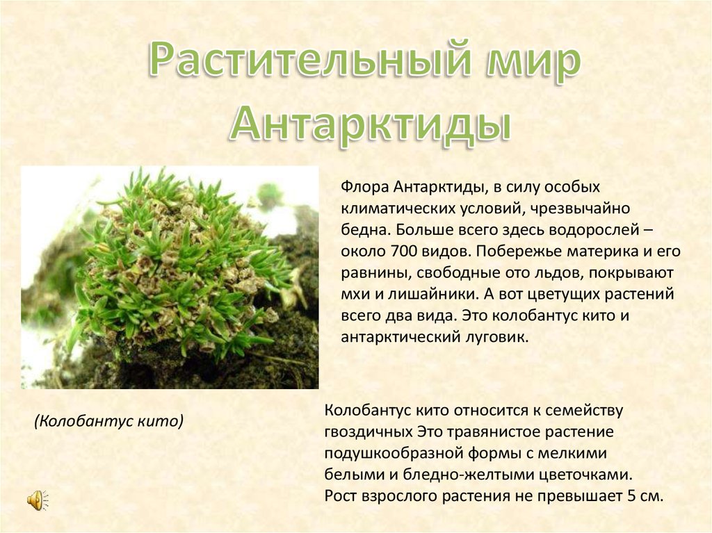Флора Антарктиды, в силу особыхклиматических условий, чрезвычайно