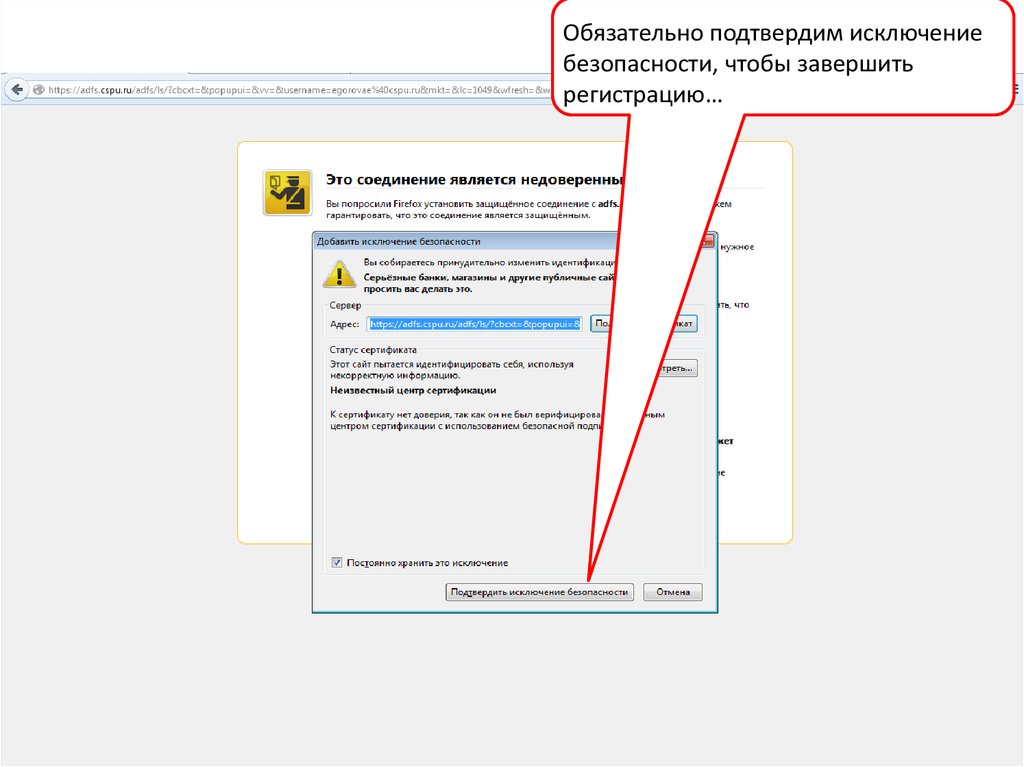 Обязательно подтвердим исключениебезопасности, чтобы завершить