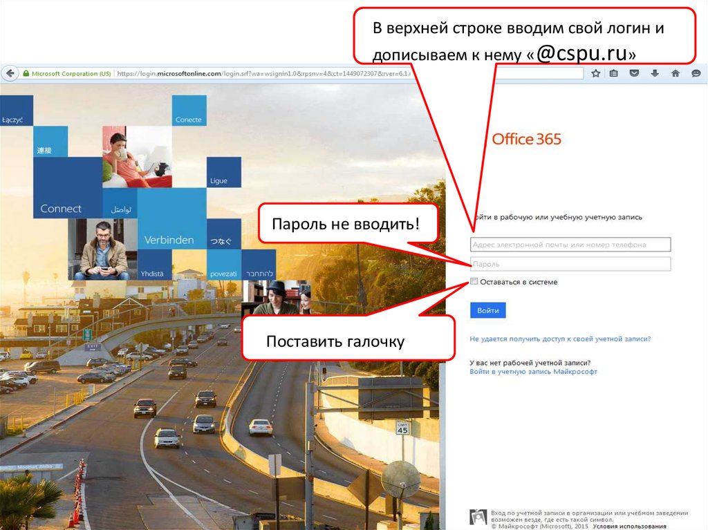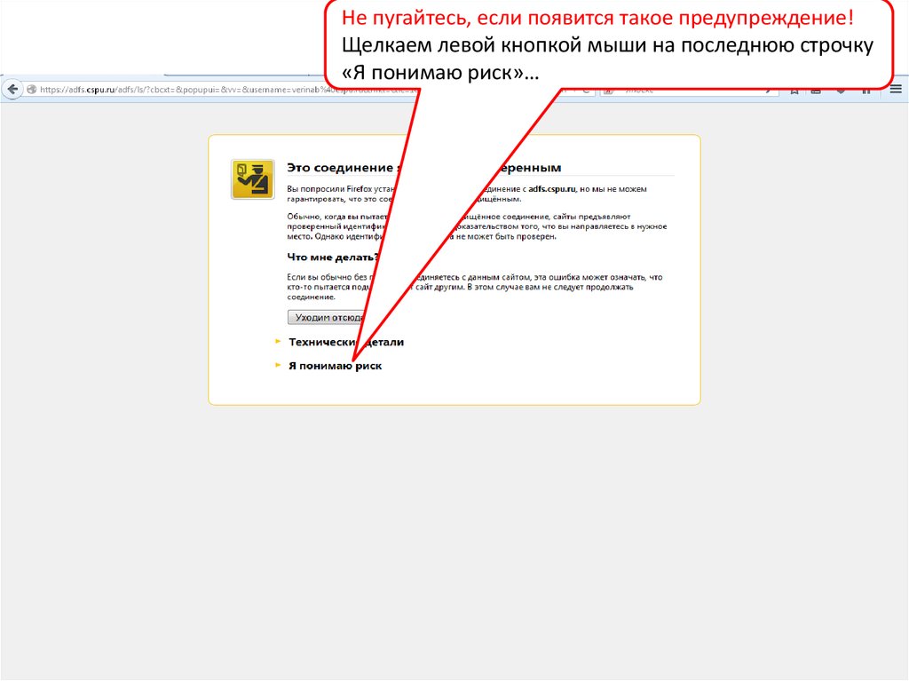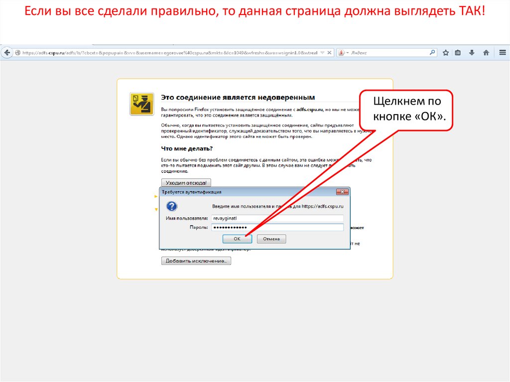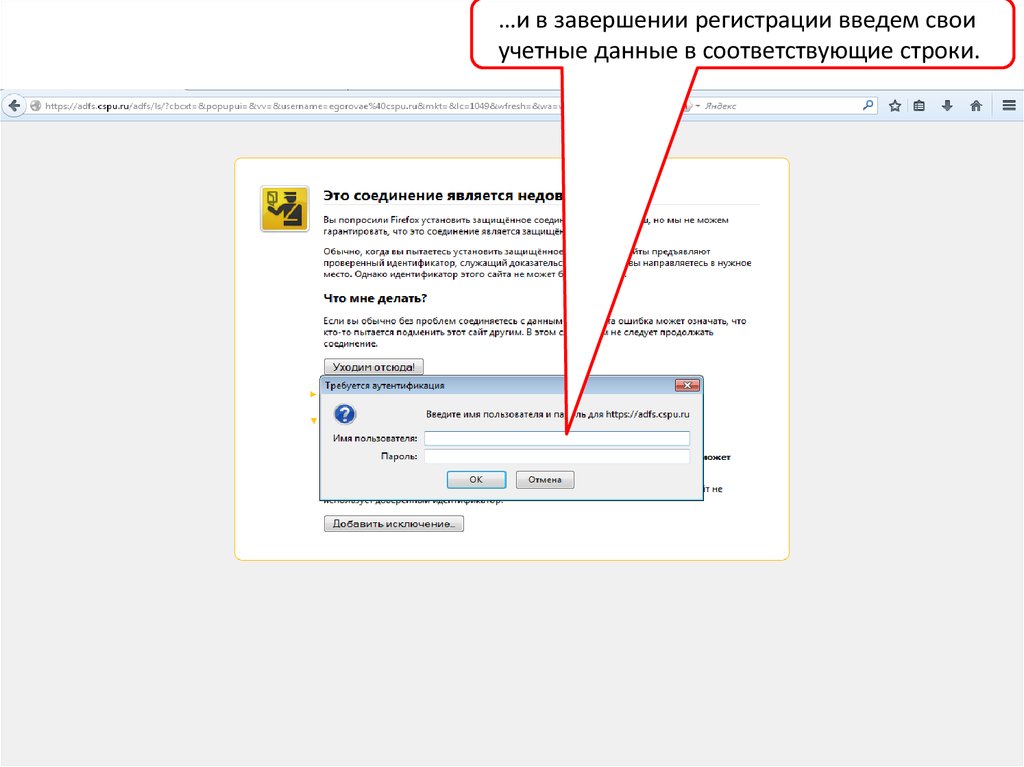 В верхней строке вводим свой логин идописываем к нему «@cspu.ru»