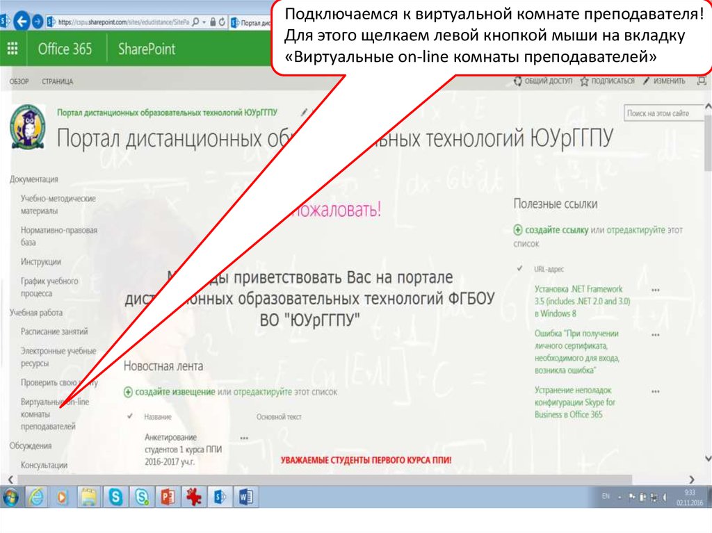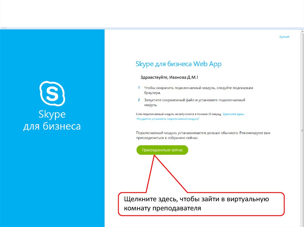 Подключаемся к виртуальной комнате преподавателя!Для этого щелкаем левой кнопкой мыши на вкладку