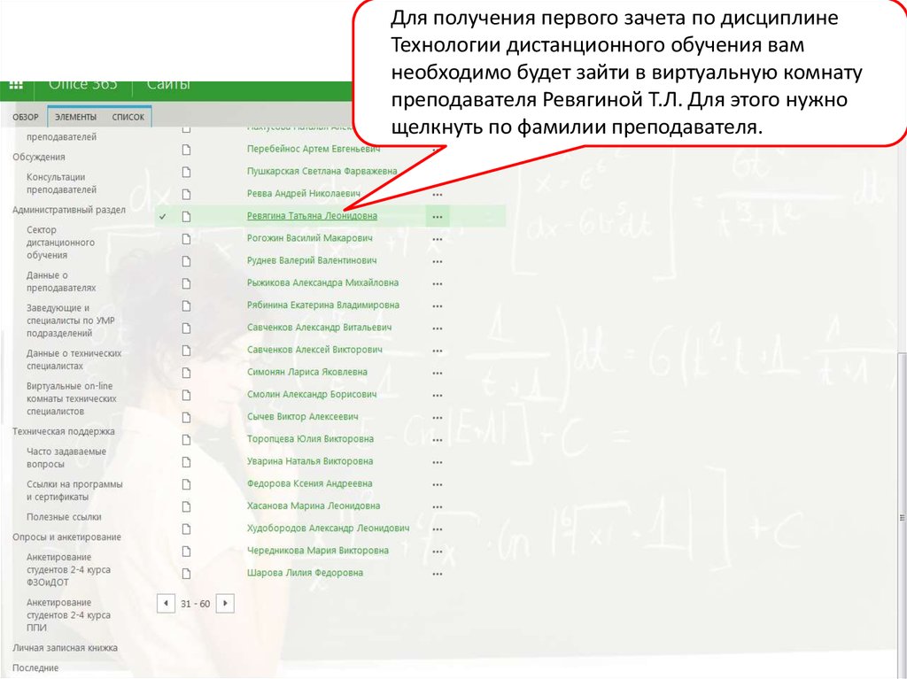 Перед нами открывается список преподавателейЮУрГГПУ, обучающих студентов дистанционно. Здесь