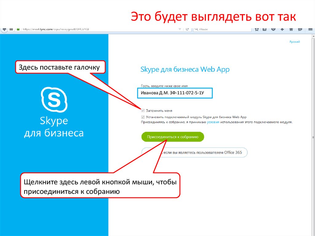 Перед вами регистрационное окно программыSkype для бизнеса. В эту строчку вы записываете на