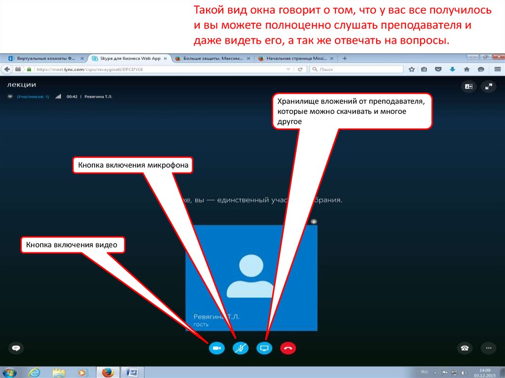 Такой вид окна говорит о том, что у вас все получилосьи вы можете полноценно слушать преподавателя и