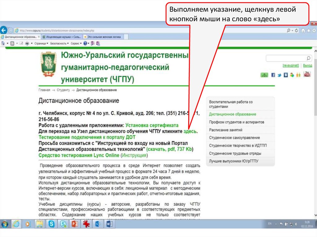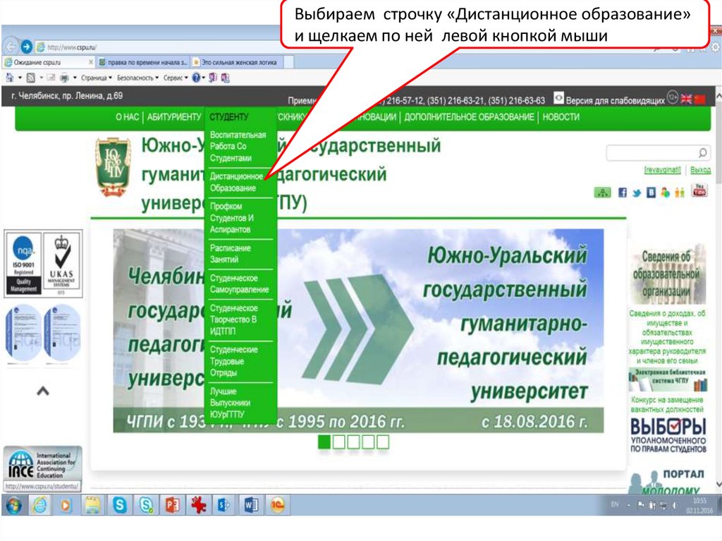Выбираем строчку «Дистанционное образование»и щелкаем по ней левой кнопкой мыши
