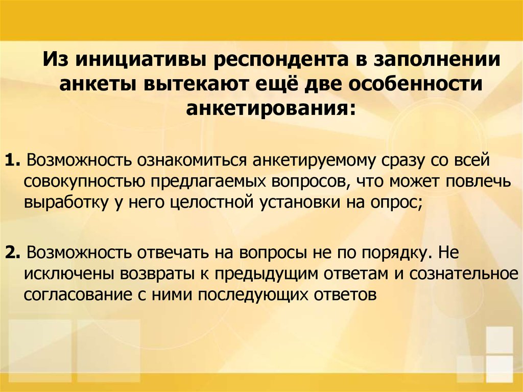Из инициативы респондента в заполнениианкеты вытекают ещё две особенности