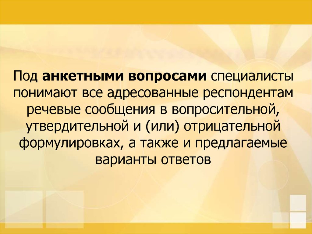 Под анкетными вопросами специалистыпонимают все адресованные респондентам