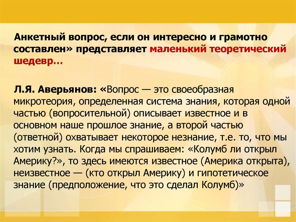 Анкетный вопрос, если он интересно и грамотносоставлен» представляет маленький теоретический