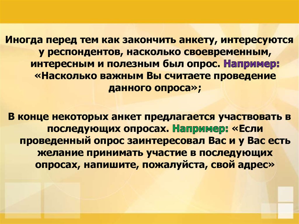 Иногда перед тем как закончить анкету, интересуютсяу респондентов, насколько своевременным,