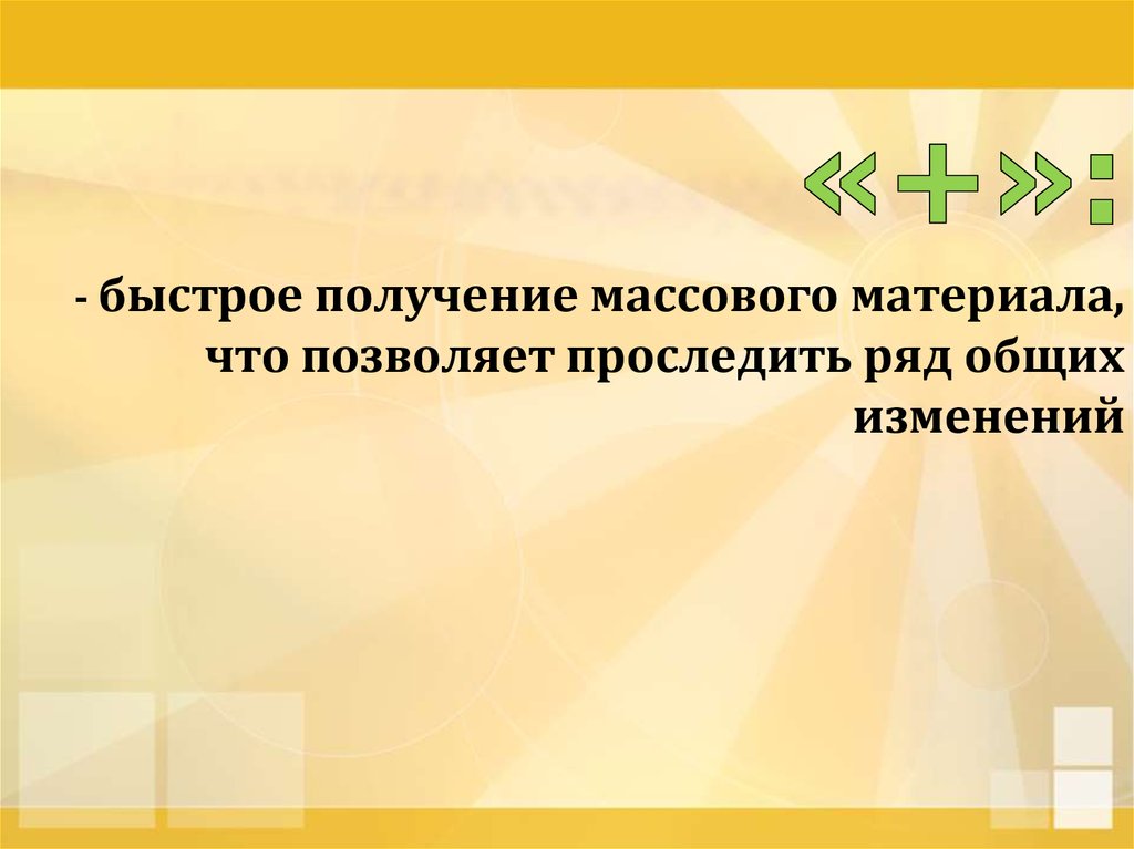 - быстрое получение массового материала,что позволяет проследить ряд общих