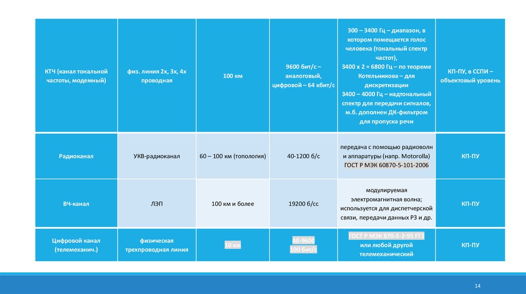 телемеханическим каналам связи;