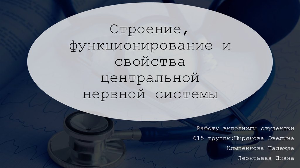 СТРОЕНИЕ. ФУНКЦИОНИРОВАНИЕ И СВОЙСТВА ЦЕНТРАЛЬНОЙ НЕРВНОЙ СИСТЕМЫ. ШИРЯКОВА ЭВЕЛИНА. КЛЫПЕНКОВА НАДЕЖДА. ЛЕОНТЬЕВА ДИАНА