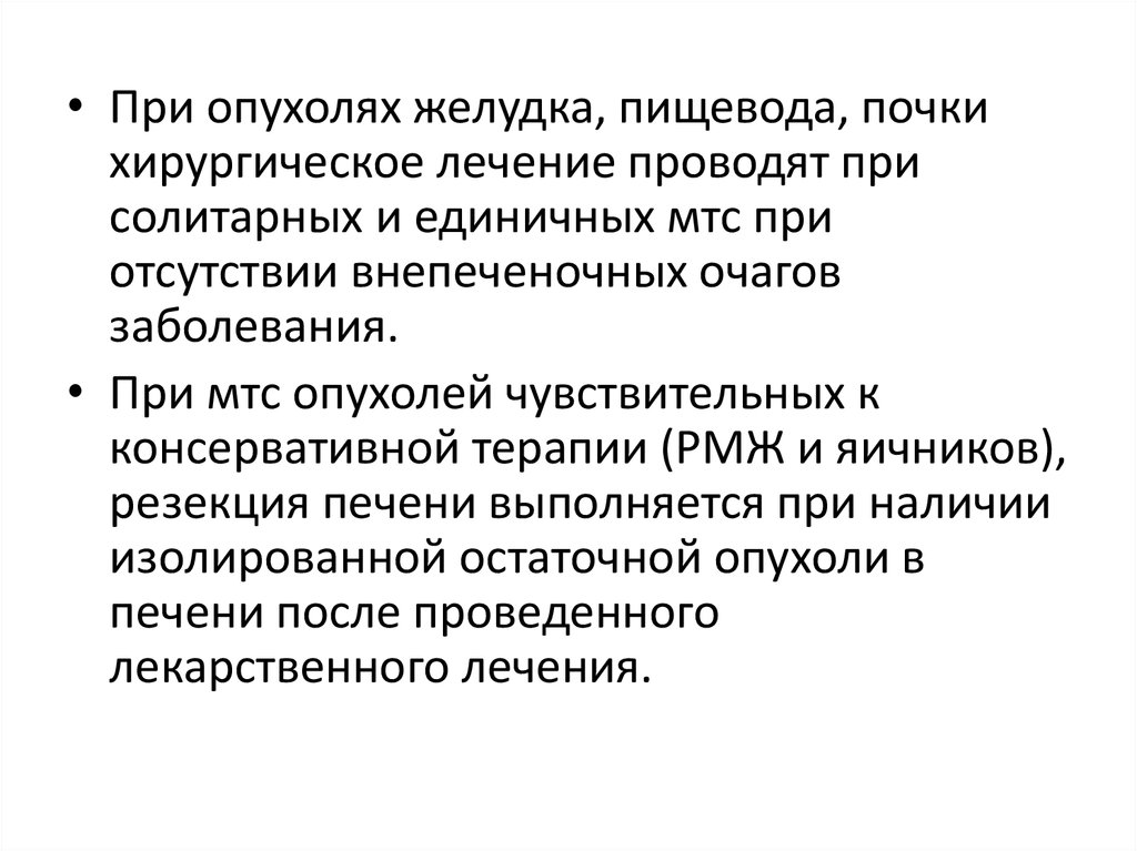 • При опухолях желудка, пищевода, почкихирургическое лечение проводят при