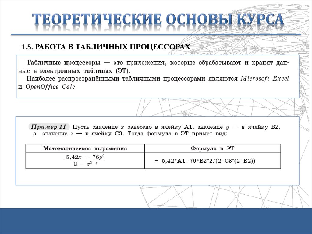 1.5. РАБОТА В ТАБЛИЧНЫХ ПРОЦЕССОРАХ12.