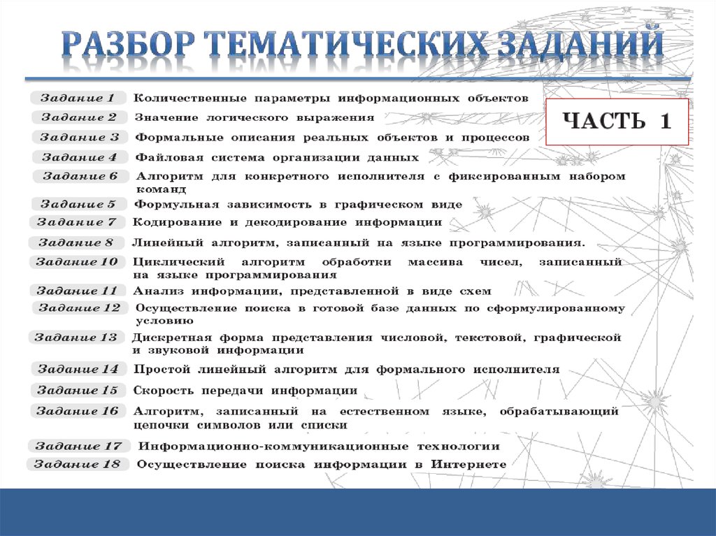 I. ТЕОРЕТИЧЕСКИЕ ОСНОВЫ КУРСА.II. РАЗБОР ТЕМАТИЧЕСКИХ ЗАДАНИЙ.