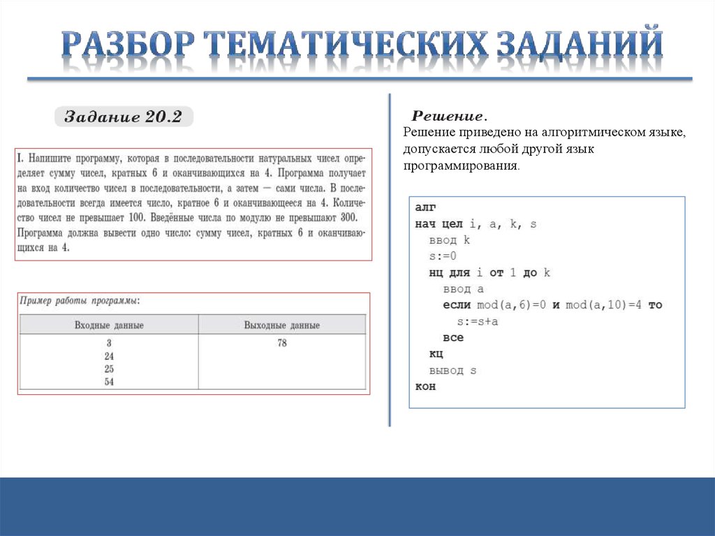 Решение приведено на алгоритмическом языке,допускается любой другой язык