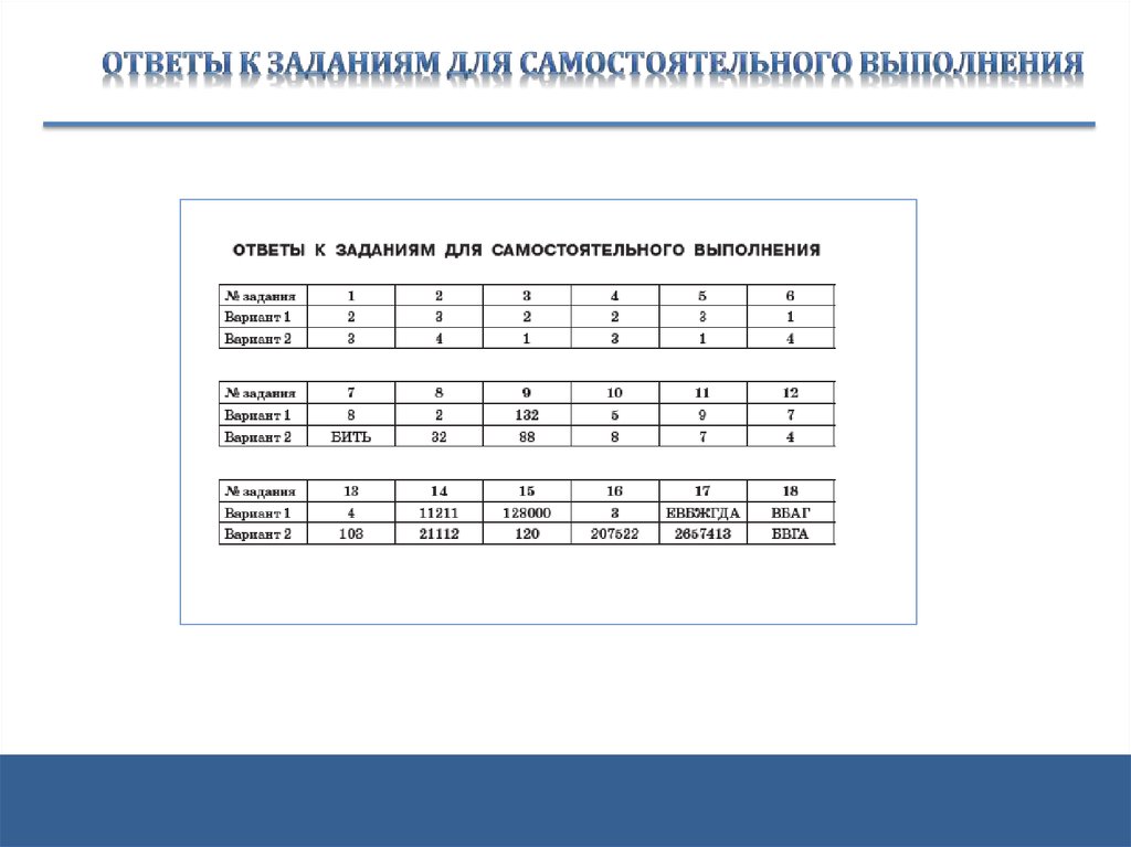 ОТВЕТЫ К ЗАДАНИЯМ ДЛЯ