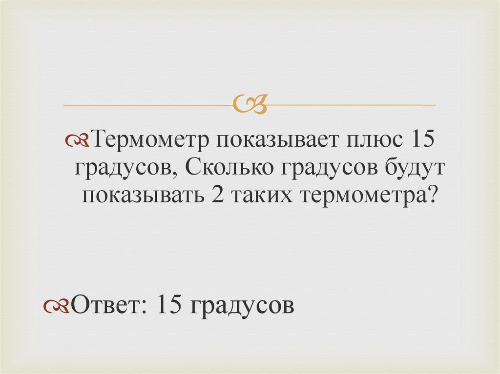 Термометр показывает плюс 15градусов, Сколько градусов будут