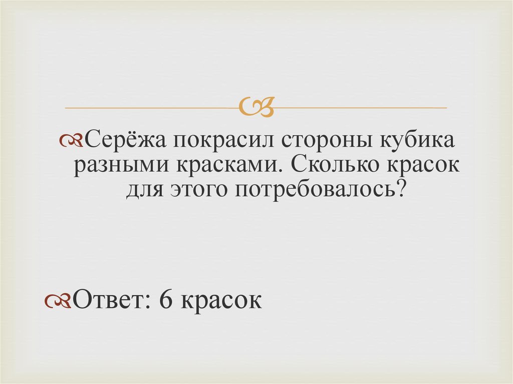 Серёжа покрасил стороны кубикаразными красками. Сколько красок