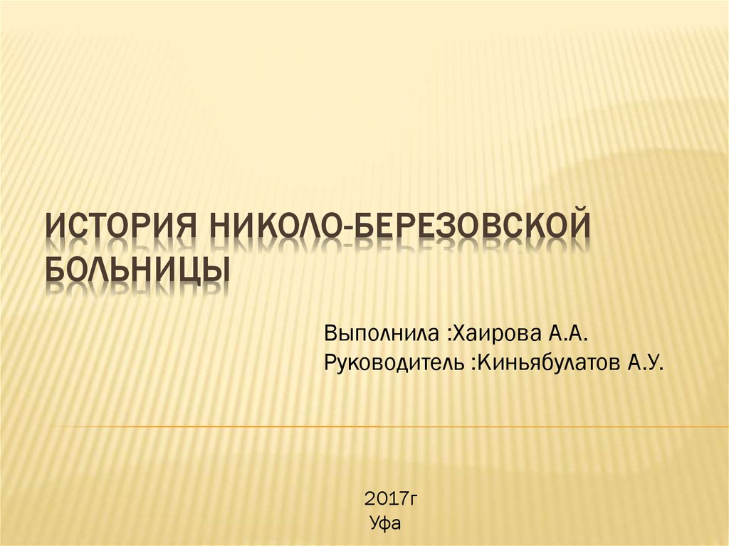 ИСТОРИЯ НИКОЛО-БЕРЕЗОВСКОЙБОЛЬНИЦЫ