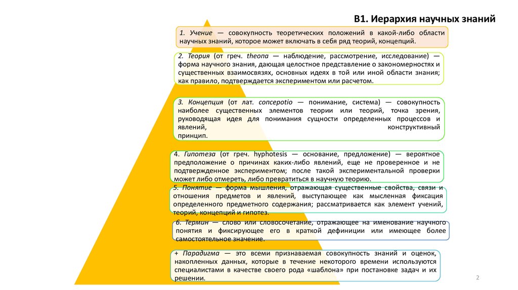 В1. Иерархия научных знаний1. Учение — совокупность теоретических положений в какой-либо области