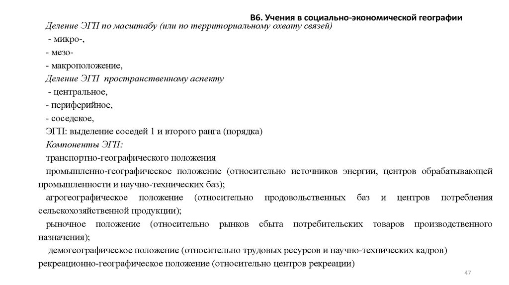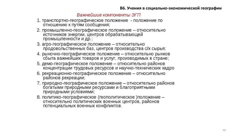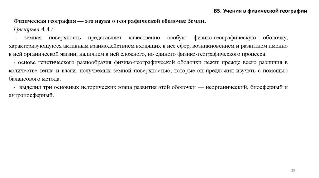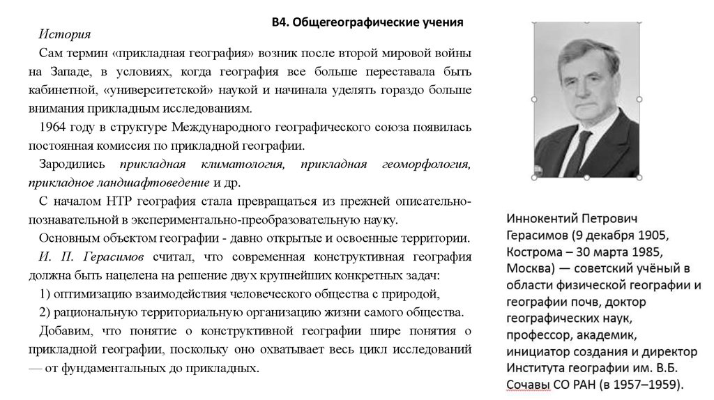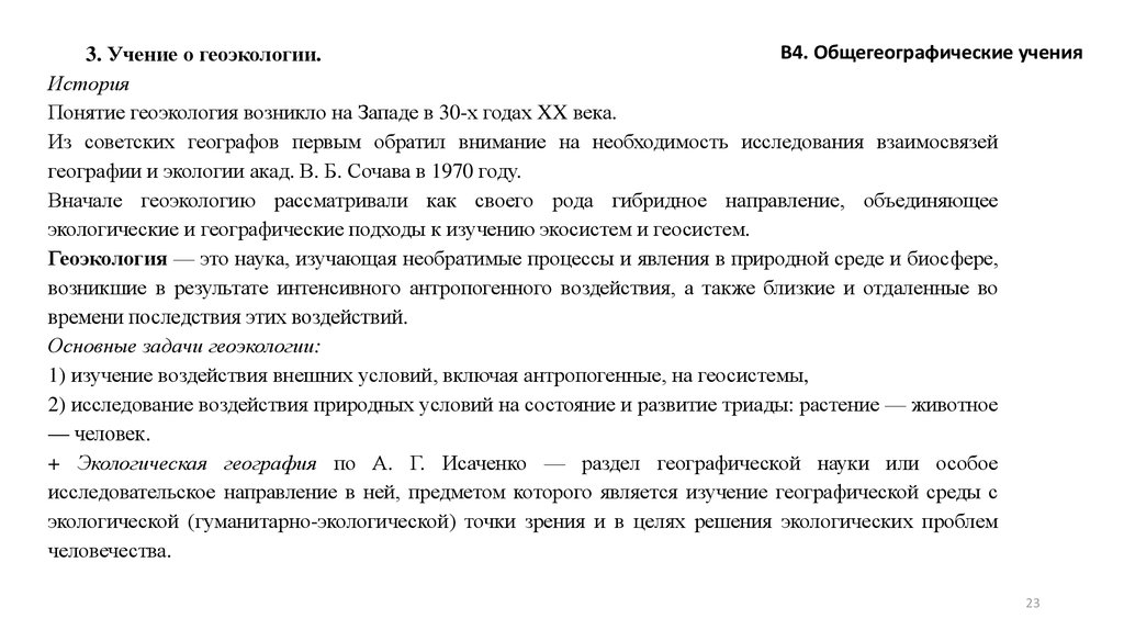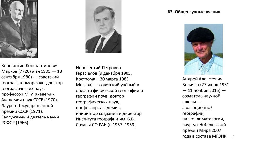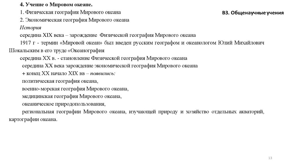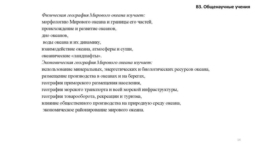 В3. Общенаучные ученияОбщенаучные учения в географии: