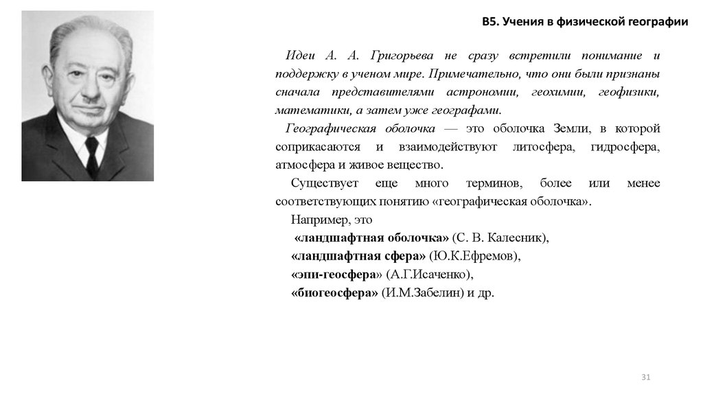 Это учение, развитое М. А. Глазовской, А. И. Перельманом,