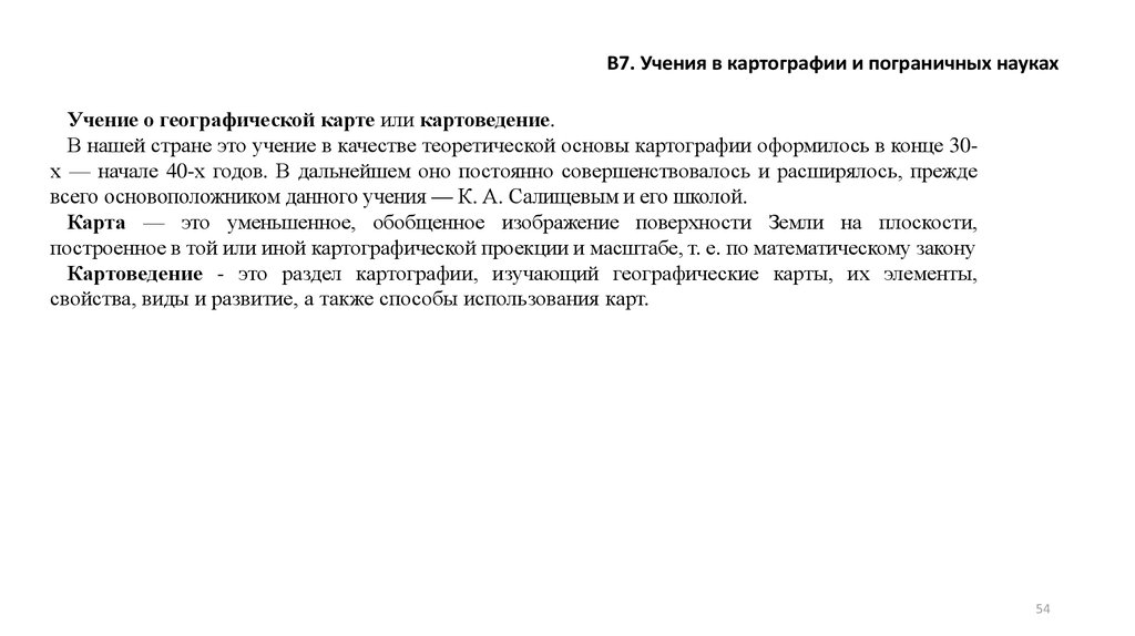 В7. Учения в картографии и пограничных наукахК. А. Салищев - особенности карт: