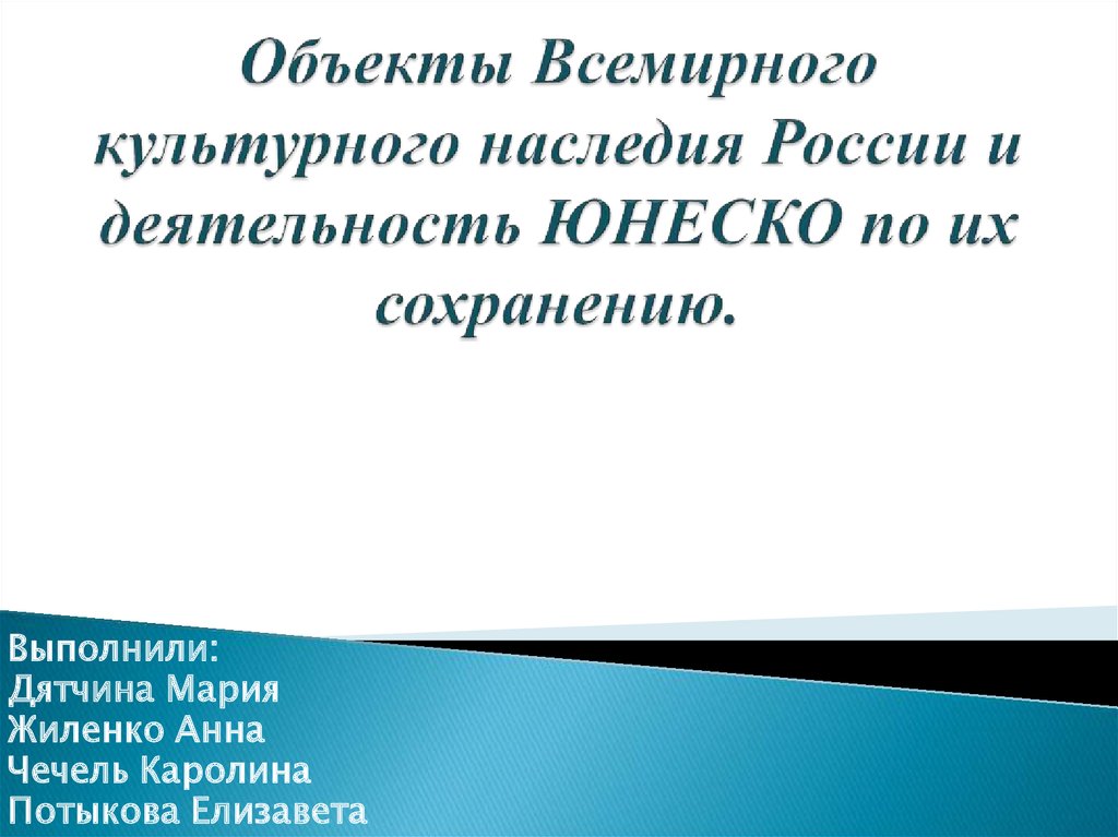 1. Объекты Всемирного культурного наследия России и деятельность ЮНЕСКО по их сохранению.