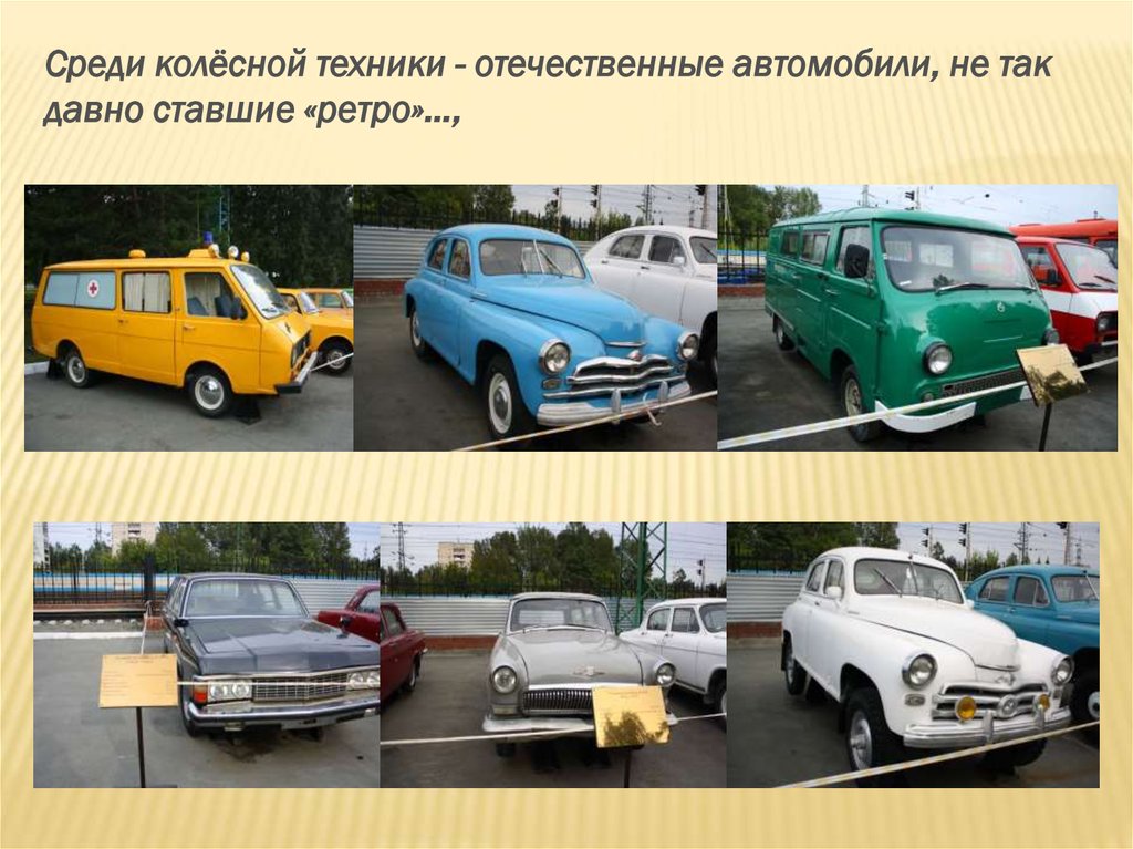 Среди колёсной техники - отечественные автомобили, не такдавно ставшие «ретро»…,