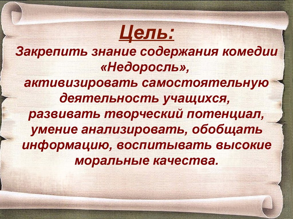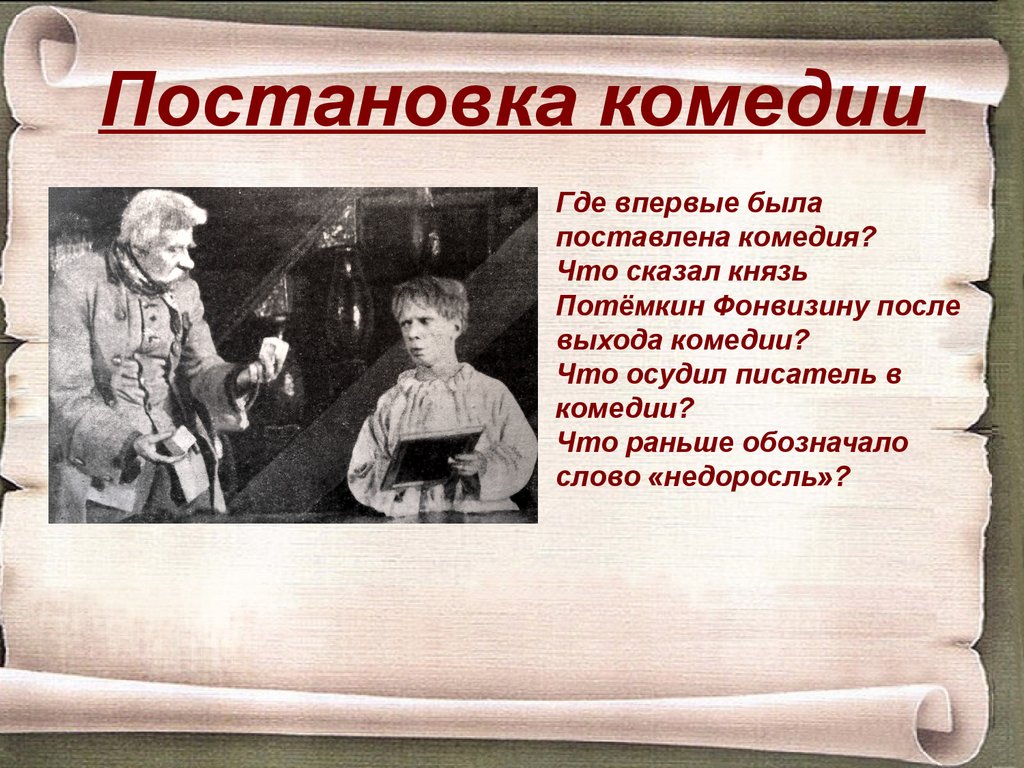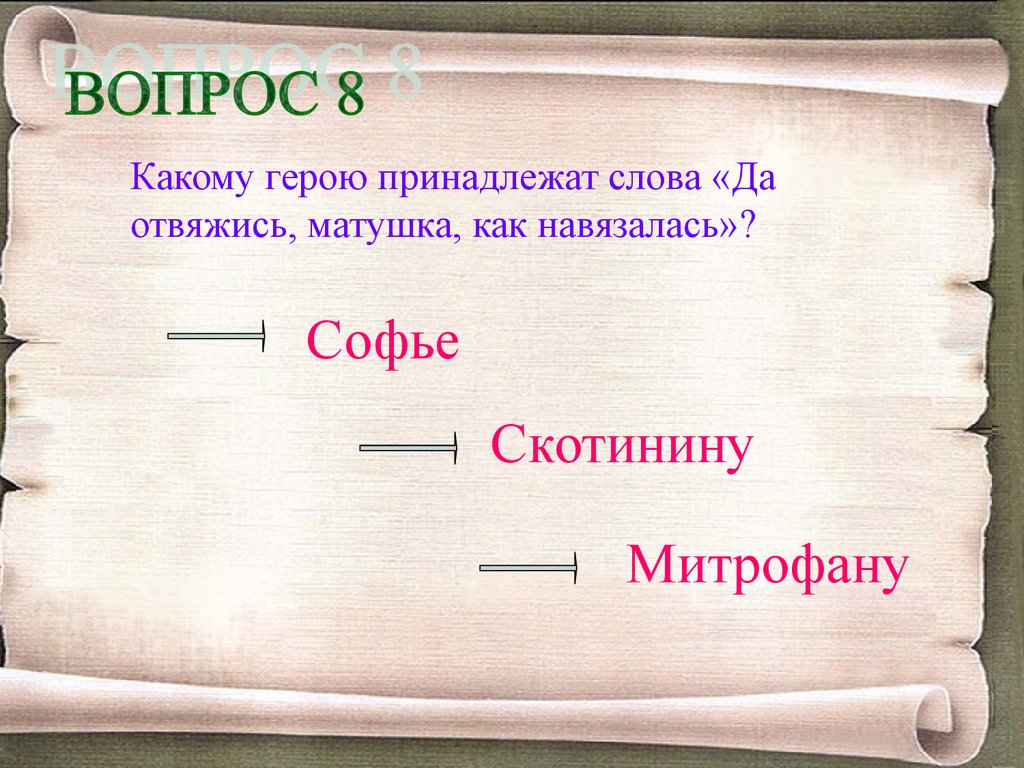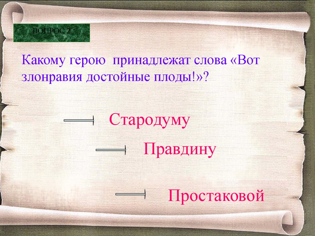 Тест по пьесе «Недоросль»ВОПРОС 1