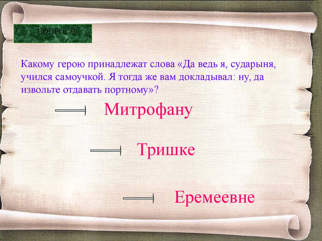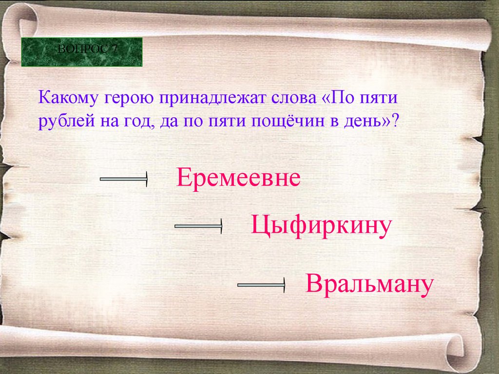 ВОПРОС 2Какому герою принадлежат слова «Вот